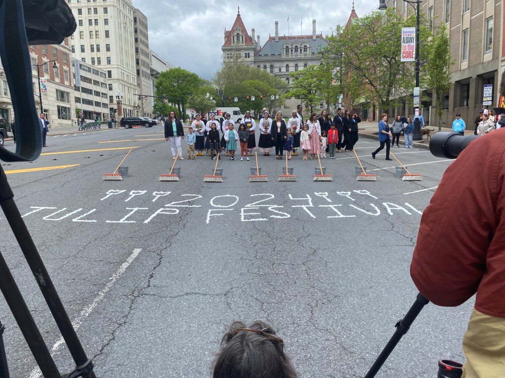 #2 of the official City of Albany Tulip Beds, the Capitol Hill Tulip Bed, slightly NW of the Hudson Riverfront Bed.