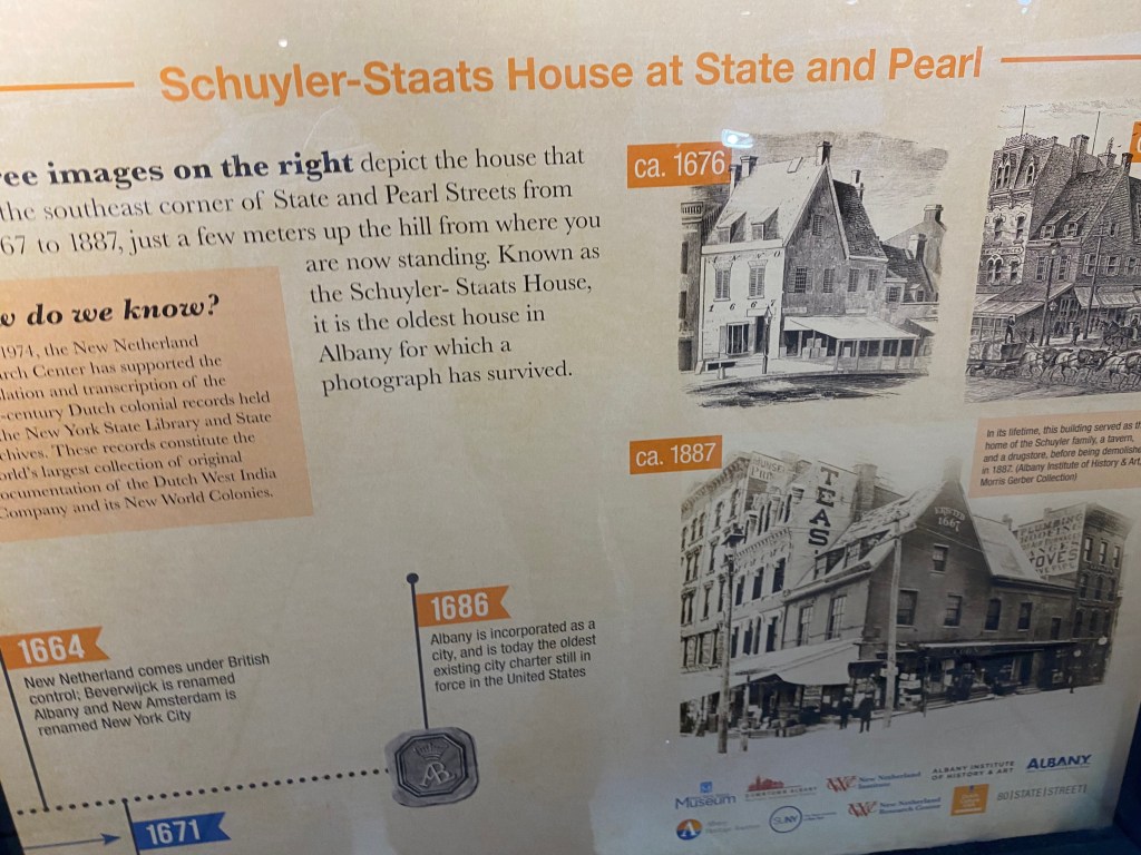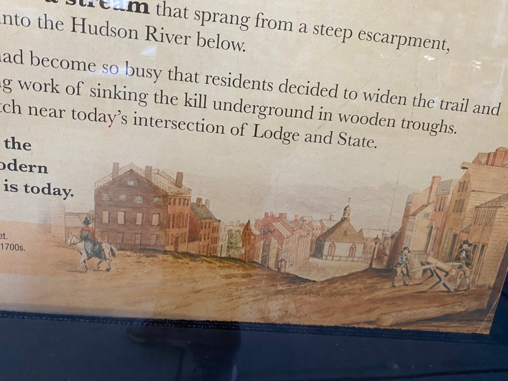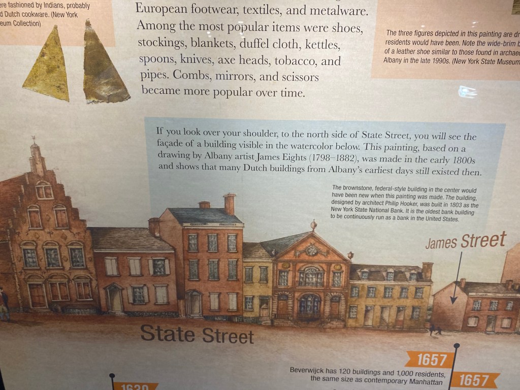 A display on the M&T Bank Building on the SW Corner of State/Pearl explains how this was the trail the Mohawk took from the Hudson River inland to the Western Gateway of the Iroquois Confederation stretching from what we know as Schenectady west across Utica, Syracuse, Rochester, Buffalo, Niagara, Toronto, Detroit & more.
